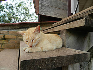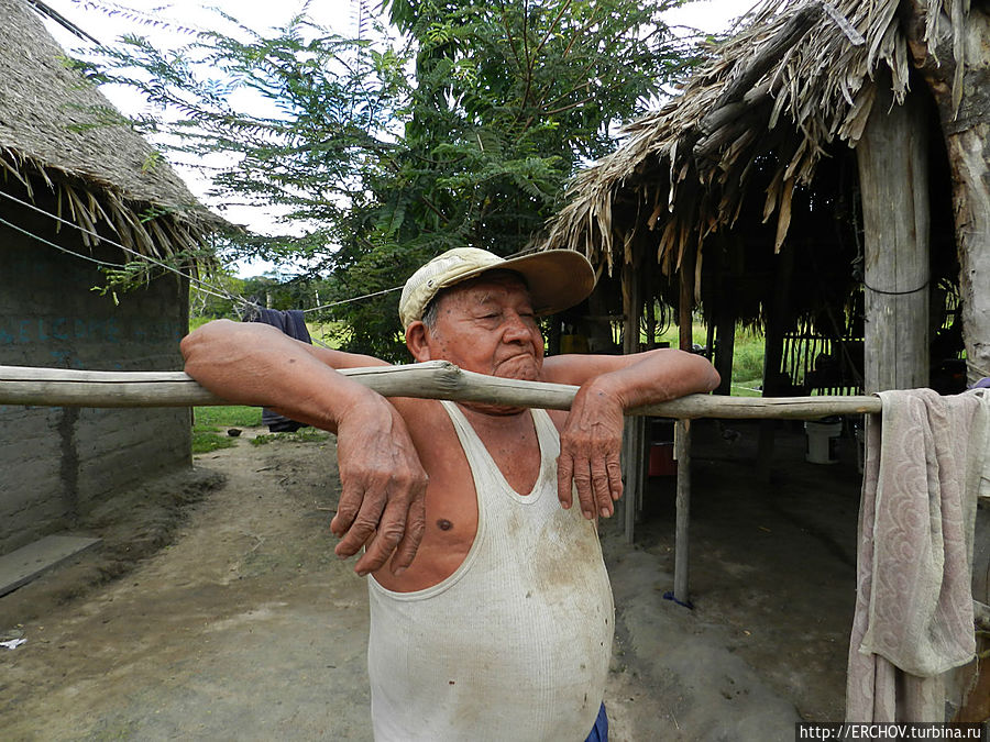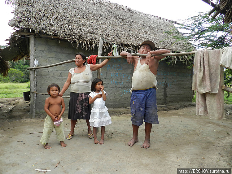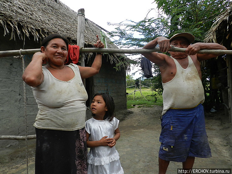 Увидев детишек, я захотел их сфотографировать, народ направился за мной. Из жилища навстречу стали выныривать женщины и дети, все улыбаются, разрешая себя снимать. Мальчишка лет 10 сидя на траве с серьёзным видом мастерит стрелу. Зачем она ему? Наверно не для того, чтобы в индейцев играть.Пока мы на ажиотаже снимали детей, появилась маленькая бабка, что-то спросила на местном языке, и, не дождавшись ответа, исчезла. Смотрю, она и её внучка начали пинать, лежащего в гамаке деда. Труп в домике оживает. Его хватают под руки и выпихивают на улицу.