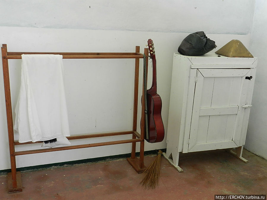 В церкви (видимо протестантская) два рисунка с Иисусом, ряды скамеек, Библия на алтаре. У пастора в подсобке его белая одежда, рядом висит гитара. Священник здесь имеет большой авторитет. Жаль, что не удалось посмотреть проводимую им службу.