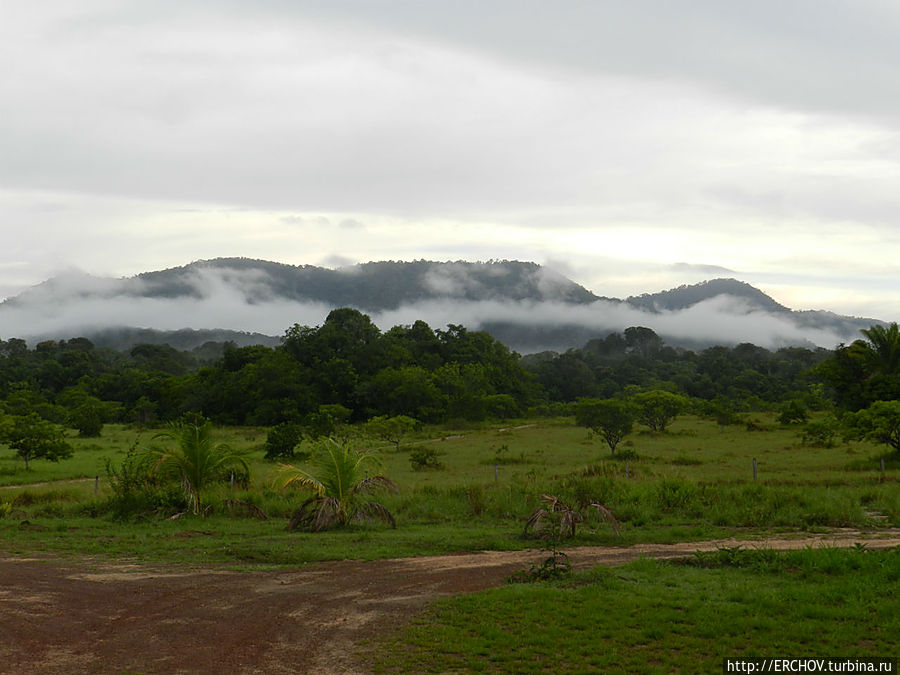 Возвращаемся на основную трассу Гайяны. Вновь едем на юг, встречая по дороге целых две встречные машины. Въезд в национальный парк охраняется вооружёнными рейнджерами. Охота здесь строго запрещена, и на КПП отмечаются все проезжающие машины.