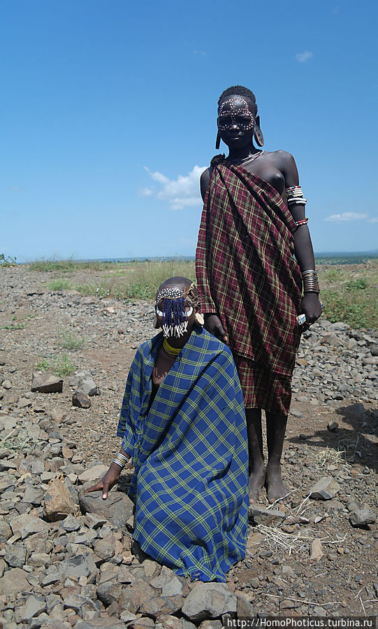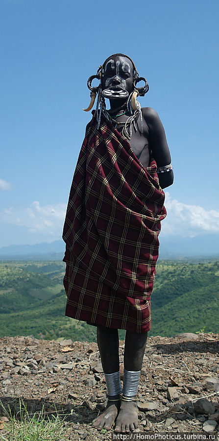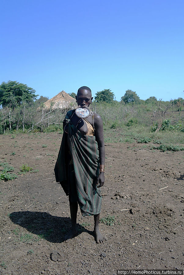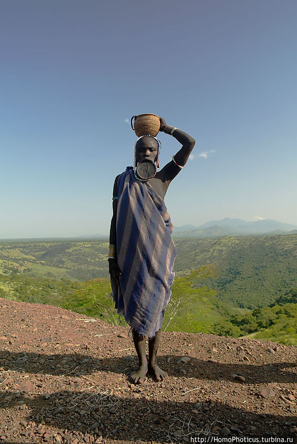 Работают фотомурси, как понятно из их наименования, фотомоделями, причем их маркетинговая стратегия весьма агрессивная:) Эту площадку облюбовали также полтора десятка представителей сего достойного племени, представляющих собой прекрасный срез всех слоев мурсийского общества: мамочки с младенцами, подрастающие мальчики-девочки, парни и девушки репродуктивного возраста, и старики. ВСЕ ОДНОВРЕМЕННО в доли секунды окружили меня, обступили и начали предлагать свои услуги фотомоделей. "Фото, фото фри бырр, йес, мистер, фото", но я сделал скучающее лицо и испуганно проследовал к обрыву, чем весьма удивил аборигенов . Успокоившись и засняв панораму, я обернулся и чуть не сделал шаг назад в пропасть — они ВСЕ стояли в полуметре от меня, а возле машины мне злорадно издалека улыбался местный гид. Выдохнув, указал пальцем на девушку с самой большой, как мне показалось, тарелкой, я решительно сказал ей "Ю!"и уступил ей место у обрыва. Быстро сделав снимок и отслюнявив три бырра, заспешил к машине переваривать, на что мне гид удивленно спросил, мол, и все? Вроде такие интеллигентные ребята. ...