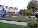Чем еще запомнился мне Ренн, кроме «вкусных блинов» — вот этим парком прямо в центре города. Ренн вообще город не слишком шумный, а здесь была бы абсолютная тишина, если б не школьники, галдящие на прогулке за стеной соседнего пансиона. Птичник с попугаями и другими экзотическими птицами, розарий, заботливо укутанный до тепла, аккуратные дорожки, садовые павильоны и скульптуры — прекрасная обстановка для прогулок и чтения на скамейке, хотя кое-кто тут предпочитает бодрые пробежки — что…