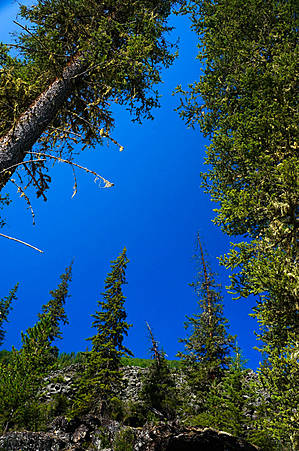 А вокруг были бесконечные горы! Мы поднимались всё выше и выше, а растительность тем временем тоже менялась. Ближе к самой Белухе, когда высота над уровнем моря стала приближаться к 2000 м мы вообще вошли в лесотундру с карликовыми берёзами. По пути нам попадались заросли жимолости и красной смородины, все ягоды как раз поспели! Так же нам крупно повезло с погодой – почти всё время нашего пребывания на Алтая не было дождей и светило солнце.