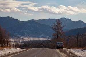 Чем дальше от Семинского мы удалялись, тем меньше снега становилось. Температура снова поползла вверх, окружающие пейзажи поражали нестыковкой соответствия времени года с видами мест.