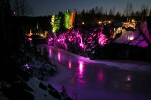 От Импилахти едем в обратную сторону. Заезжаем в Хийденсельгу, где незаметно для себя оказываемся на вершине горы Хийденвуори. Судорожно вспоминая, на ходу выдумываем, куда бы ещё заскочить. Следующим пунктом выбрали посёлок Харлу, где можно поглазеть на ГЭС на реке Янисйоки. Ничего интересного, но зато что-то новое. Далее программа возвращается к стандартной – едем в Рускеалу, без которой никуда. Но и мраморный карьер удаётся открыть для себя с новой стороны. Теперь мы видели его не только при свете дня, но и при свете ночи. На следующий день не обходится без водопадов. На Ахвенкоски можно "походить по водопаду", почувствовав под ногами его мощь. На Рююмякоски запустили новую ГЭС, там теперь всё по-другому.