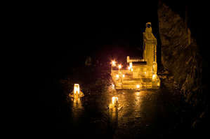 На подъезде к Приозерску, понимаем, что некоторый запас времени ещё есть, и решаем сделать крюк ради часовни Андрея Первозванного, где на глазах у удивленной толпы одновременно с нами подъехавших паломников, озорно хохоча, закрываем сезон прогулок по льду.