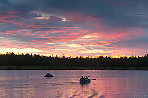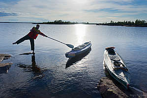 Далее — на арендованной машине до берега, затем на байдарках по островам между Куземской и Воньгинской губой.