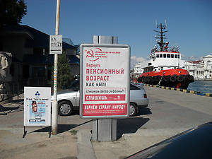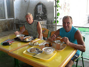 родина Махно и степной край, где действовала его анархическая армия. Следующим был городок Пологи население которого говорит на украинском языке. На рынке городка недорогие продукты питания а именно мясо сало овощи и фрукты а вдоль обочин дорог растет много деревьев с грецкими орехами рви сколько душе угодно. Дальше 90км дорога пролегала через небольшие села и степи. Выехали у поворота на Бердянск а именно в 10км от него. И проехав километров 70 попали в сильнейший дождь и поскольку время было 2.00 решили подремать в машине пару часиков. После чего успешно стартовали в сторону крымского перешейка. Крым встретил обилием рынков у дороги на которых очень большое разнообразие вяленой и сушеной рыбы обитающей в азовском и черном морях. А так же развалами арбузов дынь персиков и прочих фруктов. В Форос ехали проезжая по пути такие города как Джанкой, Симферополь Алушту Ялту. На место прибыли часов в 12. Место доложу я Вам прекрасное, хвоя покрывает все склоны, море чистое видно метров 10 до дна. Жилье в основном в 5ти 9ти 12ти этажных домах. Квартиры сдают все жители этого маленького городка. Цены колеблются от 400гривен за однушку. До 800 за двушку. Питание в местной столовой изумительное все продукты свежие и большое разнообразие цена обеда примерно 50гривен на человека. Развлечений особых нет. Но мы ездили на машине в Севастополь-красивый белый город который разделяет пополам большой заливЗалив разделяющий Севастополь на две части. Переправа через который возможна на пароме как пассажиров так и автомобилей.