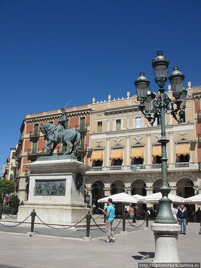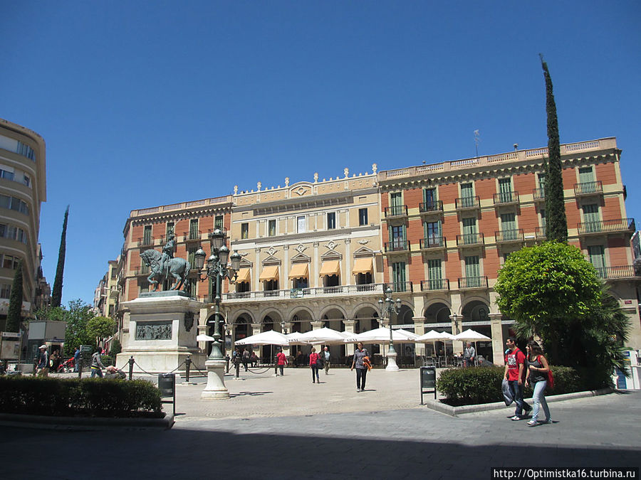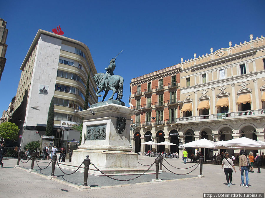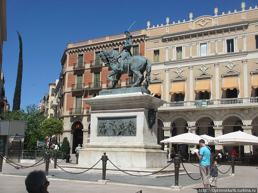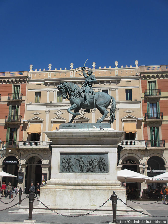 Мы идём по маршруту "Дорога модернизма". Carrer De Llovera, вышли на площадь Plaça del Prim и увидели памятник Генералу Хуану (Жуану) Приму, который родился здесь в Реусе.