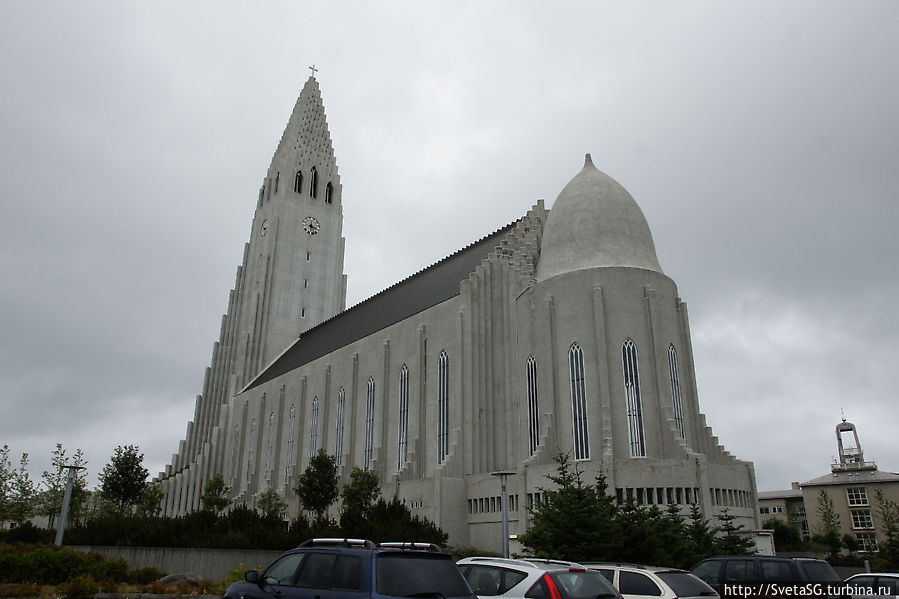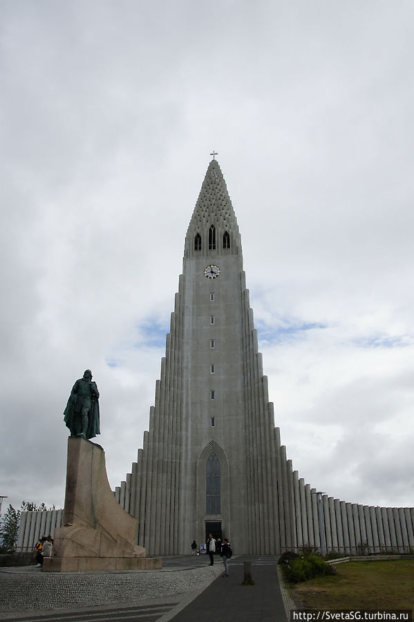 Нас привезли к церкви, фото которой есть у всех, кто бы в Рейкьявике.