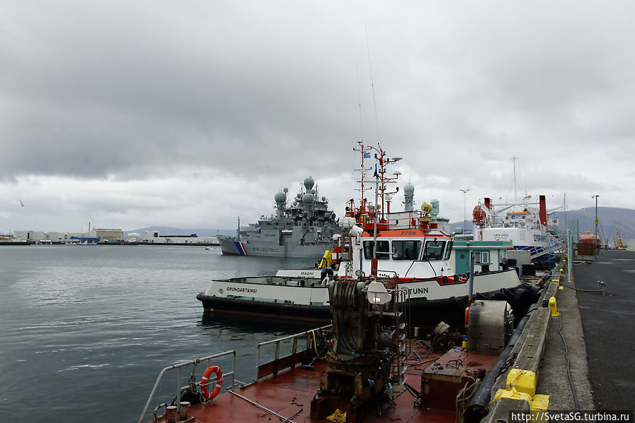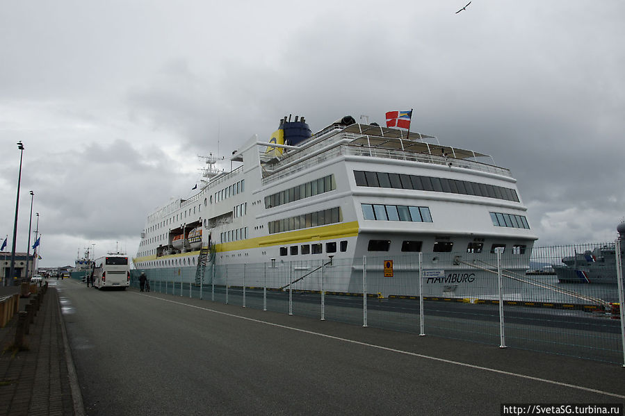 А потом начался дождь, от которого мы скрылись в кафешке. Покушали, выпили пивка. Дождь тем временем усилился и когда мы дошли до набережной, поливало так, что пришлось укутаться и зачехлиться. Так что фото Рейкьявика больше нет.