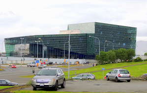 Вернувшись с озера по старинной улочке Adalstraeti, мы выйдем к морскому заливу Gamla Hofnin, на берегу которого построено тоже оригинальное и модерновое здание, окна которого похожи на пчелиные соты. Это концертный зал и конгресс-центр Harpa.