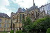"Выдающийся опыт использования новых архитектурных приемов и гармоничное сочетание скульптурных украшений с архитектурой сделали Нотр-Дам в Реймсе одним из шедевров готического искусства XIII в. Бывший монастырь, где покоятся останки Св. Реми (440-533 гг.) – архиепископа, учредившего священное помазание королей Франции, — сохранил свой великолепный неф IX в. Дворец архиепископов, известный как дворец То и игравший важную роль в религиозных церемониях, был почти полностью перестроен в XVII в." (whc.unesco.org/fr/list/601)