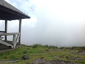 Беседки для пикника на подъезде к Майдо. За 10 мин облака поднялись на гору, прошли сквозь нас и устремились к Майдо. На часах 9.45..