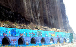 Чтобы обуздать непокорную скалу, было принято решение "посадить зверя в клетку". Я не представляю, как это было сделано технически, но результат поражает.