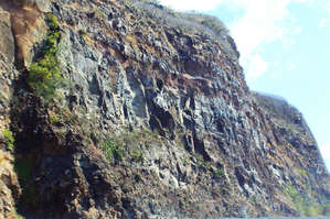 Около десяти километров базальта заковано в металлическую кольчугу, под которой бьется живое сердце скалы. И сердце не сдается, скала даже пытается скинуть оковы, два раза пласты кольчуги слетали, с грохотом и металлическим лязганьем. А камнепады так и продолжаются, причем не только в циклоны, но и в безветренную погоду.