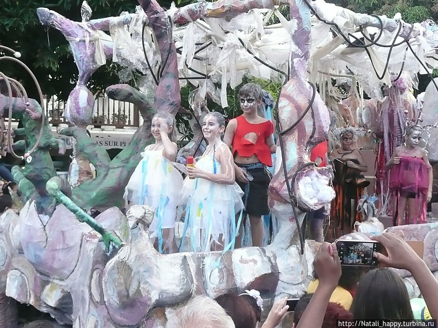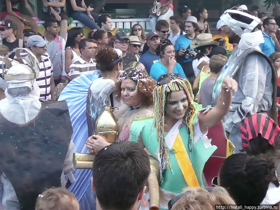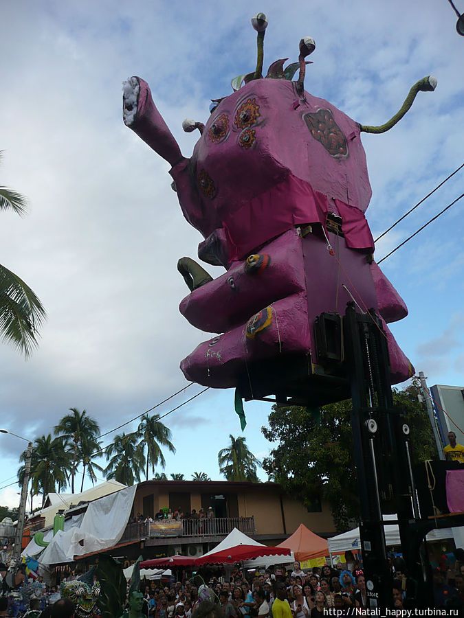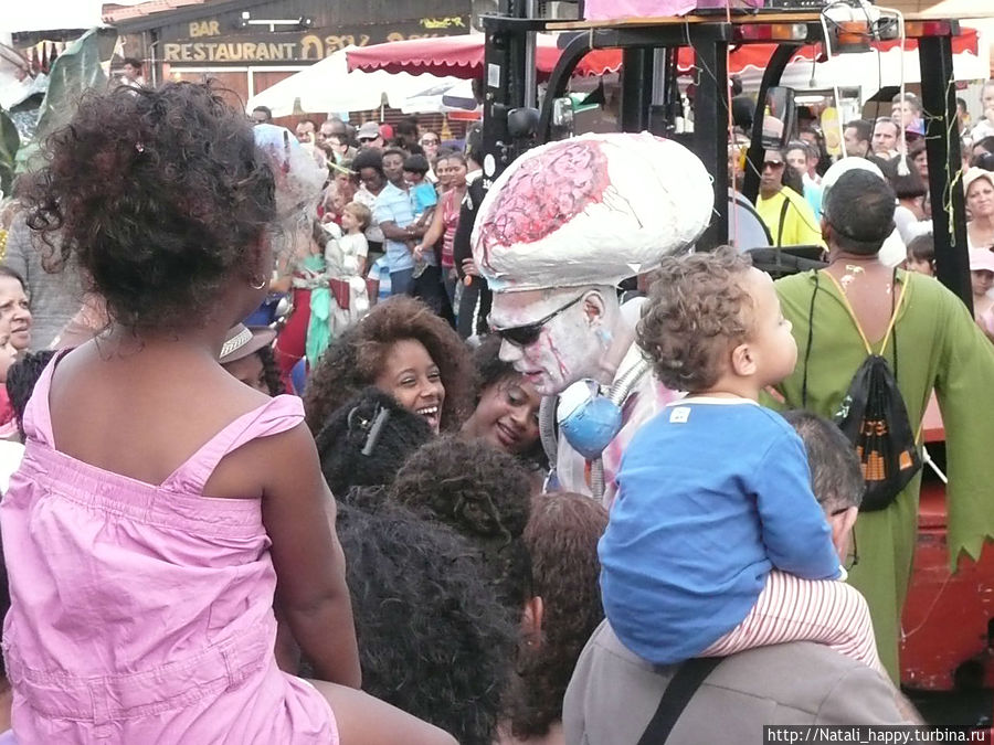 Большая розовая фигура — символ карнавала, после захода солнца ее торжественно сжигают, открывая тем самым ночную часть карнавала — фейерверк и танцы на пляже до утра