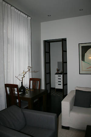 Номер: просто класс! Огромный, состоящий из двух комнат: гостинной и спальни, просторной прихожей, с двумя вместительными шкафами, и маленькой кухонки, виртуозно скрытой красивыми дверцами, что создавало ощущения какого-то шкафчика. Но за этими дверками пряталась весьма приличное пространство с окном во всю стену и всем необходимым составляющем солидной кухни. Плюс изящный кованый балкончик, старинный камин, большой телевизор, с несколькими русскими каналами (долгими осенними вечерами это совсем не лишнее), деревянные полы, а в ванной и на кухне полы с подогревом, и прочим набором пяти звездного отеля. Особенно хочу отметить великолепные спальные принадлежность, настолько замечательные, что вернувшись домой, я завела себе такие же!