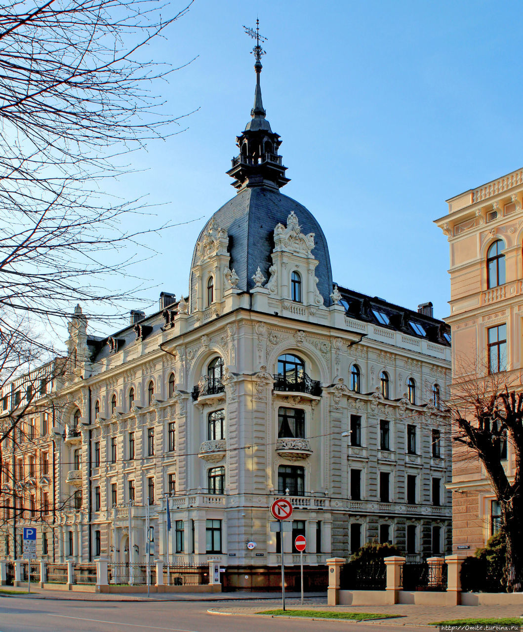 И хотя официальный адрес этого дома Виландес 1, его главный фасад выходит на улицу Элизабетес. Иные здания, именуемые дворцами и замками, не выглядят так роскошно, как этот доходный дом, выделяющийся среди других домов огромной угловой башней.