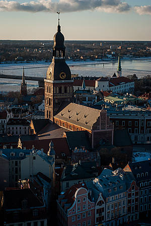 Смотровая площадка, которая входит в обязательный перечень мест для посещения в Риге, находится в башне Церкви Св.Петра. С неё открывается чудесный вид на крыши Старого города, центр Риги, реку Даугаву.(высота — 71 м).