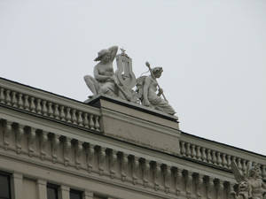 Рядом со зданием оперы стоит памятник даме с собачкой. На самом деле это памятник рижскому градоначальнику Георгу Армистеду, установленный в 2006 году на средства бизнесмена Евгения Гомберга в честь приезда в Ригу английской королевы.