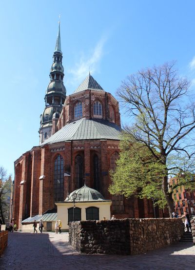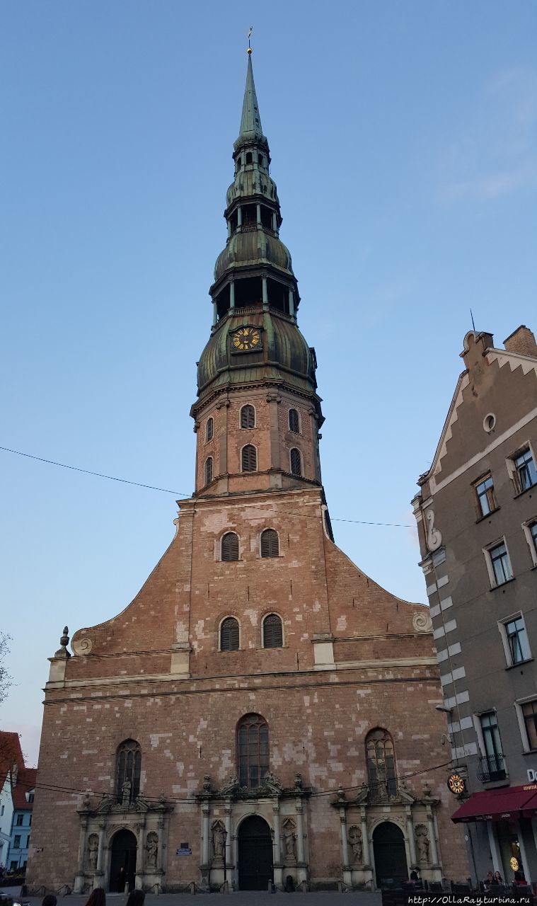 Она обязательна к посещению как минимум по трём причинам. Во-первых, историко-архитектурная составляющая. При знакомстве с любым старинным городом и, тем более, страной, пожалуй, мимо религиозных сооружений пройти просто невозможно, даже если вы относитесь к любому вероисповеданию скептически . В любой конфессии храмовым строениям издревле уделяли особое внимание, стараясь сделать их не только функциональными, но и максимально красивыми. Означенная церковь ещё и самый древний храм города, впервые о ней упоминается аж в 1209 году! Понятно, что с тех пор здание претерпело ряд перестроек и реставраций в силу разных событий. Ныне это трёхнефная базилика в минималистично-готическом стиле с элементами барокко. Храм строился как народная церковь — в его создании принимали участие совершенно различные сословия жителей города. Во время Второй мировой войны здание катастрофически пострадало — были разрушены стены и внутреннее убранство, полностью утрачен шпиль. Но в советское время была произведена масштабная реставрация, которая длилась с 1966 по 1983 годы. Сразу после здесь располагались концертный и выставочный залы, а теперь проводятся службы на регулярной основе. Если вы хотите детально осмотреть церковь изнутри и ознакомиться с историческими стендами, то вам нужно приобрести билет за 3 евро. Впрочем, мельком глянуть на внутренне убранство получится и если вы просто захотите подняться в башню — путь туда проходит через храм. Во-вторых, здесь можно провести замечательную фотосессию. Позади церкви вы найдёте скульптуру — животных из "Бременских музыкантов". Небольшая и очень милая — вокруг всегда есть туристы. Нужно, как водится, на счастье потереть носик ослику или кому другому повыше. Говорят, если достать до петуха (на скульптуру залезать ни в коем случае не нужно, а вот подпрыгнуть можно), то исполнится самое заветное желание! Сбоку на площади имеется большая цветущая клумба. Говорят, что каждый год она выглядит по-разному. В этом сезоне здесь поселилась радуга анютиных глазок! Привлеките к делу фантазию и получите отличные кросс-фотографии. Ну а самое интересное ждёт у входа в церковь. Тут достаточно мягкий свет и чудные скульптуры — создается ощущение, что ты находишься где-то в Италии. Всё -таки в архитектуре храм а присутствуют черты барокко, а этот стиль пришёл как раз от итальянцев. В-третьих, и, может даже, в-главных, возможность подняться на башню церкви и любоваться видами Риги с высоты. Периметр смотровой площадки не большой и тесноватый, посетители двигаются по кругу — навстречу потоку идти весьма затруднительно. Поднимают сюда на лифте группами по 10 человек, то есть сколько вышло, столько и зашло — это помогает избежать откровенной давки. Ограждения высокие, находиться наверху безопасно. Стоимость билета в 2018 году составляет 9 евро. Дороговато, потому рижане захаживают сюда нечасто. Но гостю города подняться однозначно стоит. Пока ожидаешь очереди на лифт, можно посмотреть кадры советской хроники реставрации башни и шпиля, которые демонстрируются на большом мониторе тут же. Просто поражает, какая титаническая работа была проделана и на какой высоте! Могу ошибаться, но показалось, что кое-кто из рабочих трудится без страховки прямо на краю площадки. Дух захватывает! Изначально, кстати, башня была самостоятельным со