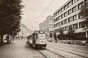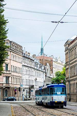Отдельно хочется сказать про рижские трамваи — они чудесны! Вообще я считаю, что трамвай — самый красивый общественный транспорт. Правда на фотографии изображен какой то праздничный трамвай, который я видел всего пару раз и только на одном маршруте.