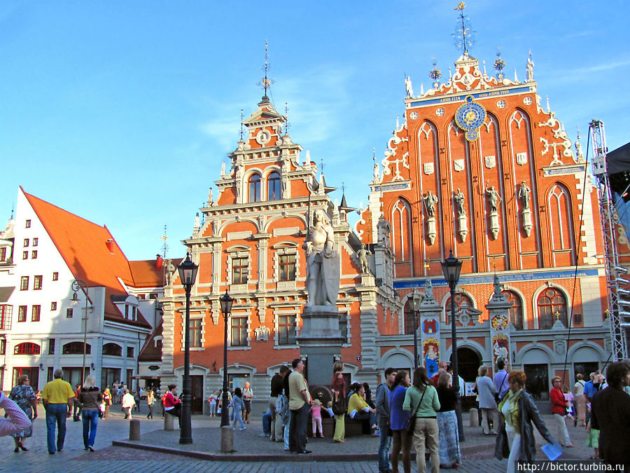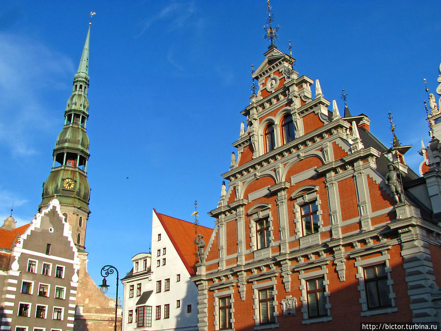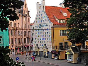 Ненадолго простившись с каналом и парком, я нырнул в сам старый город, который перенеся, между прочим, 2 мировых войны, умудрился сохранить целый комплекс старых зданий. Домский собор и громадная церковь Святого Петра – лютеранские храмы, построенные в начале 13-го века. Дом Черноголовых, отреставрированный в 2001 году в честь 800-летия Риги, относится к 14 веку. Печатные издания утверждают, что Братством Черноголовых было объединение молодых неженатых иностранных купцов. Так как им нужно было где-то собираться и делиться сведениями, не женился ли кто из них, то они и приобрели данное здание с готическим фасадом у горожан.