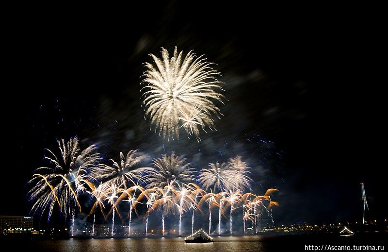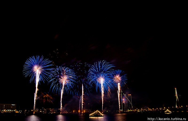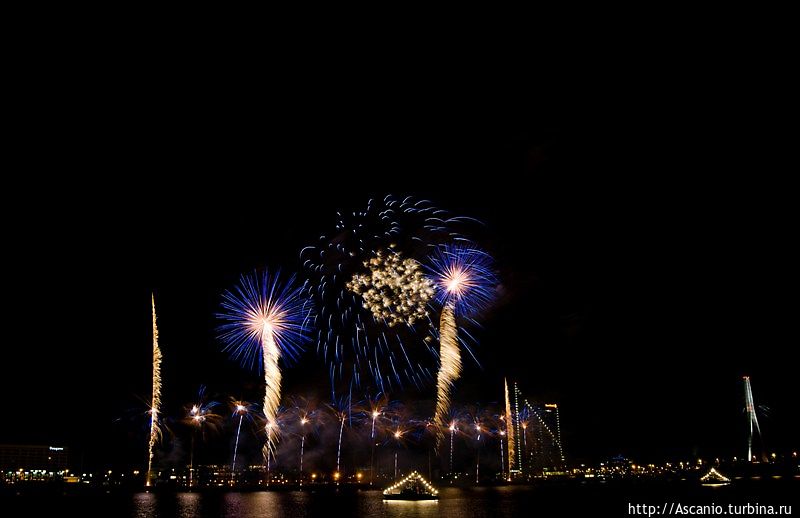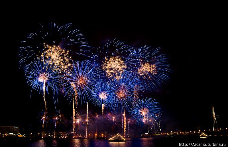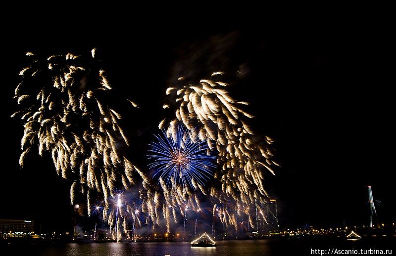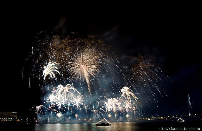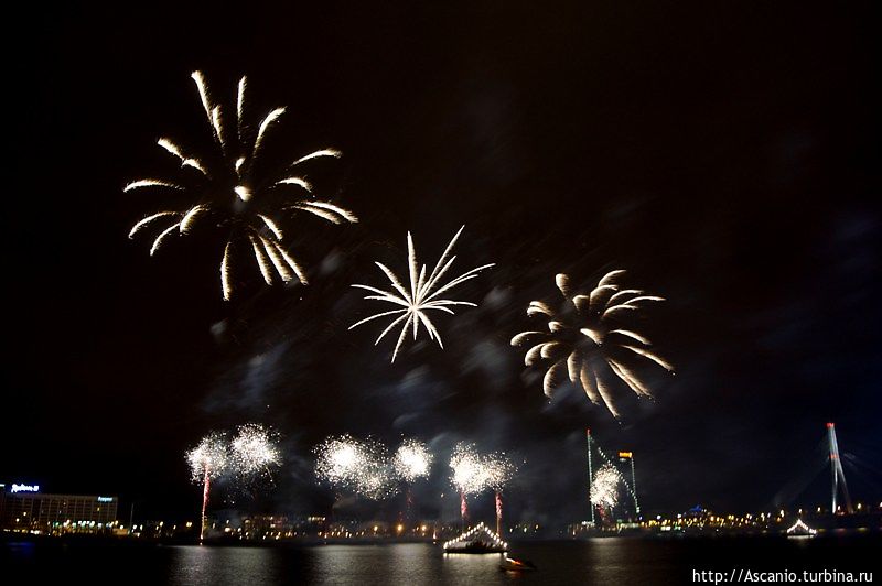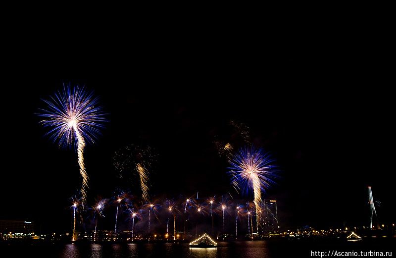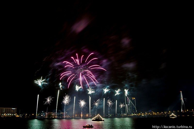 Что приятно поразило — это отношение людей. У нас во время салюта принято стоять вплотную друг к другу. Каждый норовит залезть тебе на голову. Само собой о том, чтобы поставить штатив, даже речи быть не может. А если ты хочешь занять удобное место, то будь любезен придти за 2, а то и за 3 часа до начала мероприятия. Здесь же все наоборот. Мы пришли за минут 20 до начала салюта. Выбрали наиболее подходящее место и разложили штатив. Правда народу потом прибавилось, но никто не пытался протиснуться вперед штатива. Так что условия для съемки были благоприятными.