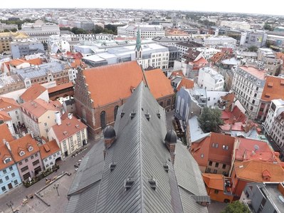 Одно из самых красивых строений Риги — это собор Св. Петра. Его башню видно издалека, поэтому он является хорошим ориентиром для приезжего человека. Под куполом собора есть смотровая площадка. За умеренную плату вы можете подняться наверх на лифте и осмотреть весь старый город.