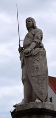 В центре Ратушной площади возвышается статуя Роланда, который являлся эмблемой экономически и политически независимого города с развитой судебной системой и свободным рынком; последняя оригинальная статуя была установлена в 1896 году при большом стечении народа.Точное происхождение и значение статуи Роланда неизвестно, однако существует несколько версий развития образа Роланда в культурном пространстве европейского средневековья. Часть исследователей связывают эту статую с личностью легендарного рыцаря Роланда, племянника императора Карла Великого. Так или иначе, считается, что статуя Роланда, украшавшая центральные торговые площади средневековых ганзейских городов (а Рига относится именно к ним), символизировала свободный рынок, независимость городского совета, которому принадлежала высшая судебная власть и торговое право, а также приоритет светских органов правления над религиозными.