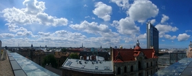 Рига и Варшава — единственные города, где есть здания, построенные по образцу московских сталинских высоток. В Риге это здание Академии Наук Латвии. Расположенный в 10 минутах ходьбы от Старой Риги 21 этажный дом высотой 111 метров. Строительство продолжалось с 1952 по 1958 год. Первоначально здесь планировалось разместить научный сельскохозяйственный центр, на первых трех этажах предполагались помещения для симпозиумов по сельскому хозяйству, выше — гостиница для крестьян. Но, уже после завершения строительства, первоначальные планы были изменены, и в здании разместилась Академия Наук Латвии. На 18 этаже здании находится смотровая площадка, с которой открывается прекрасный вид на латвийскую столицу.