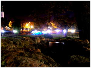 В эти , скорее всего , последние теплые денечки , вечер выдался очень приятным и романтичным. Тот факт, что уже не так тепло, как летом, только придает городу какой-то определённый характер. Можно прогуливаться по освещенным маленьким улочкам, либо через мост отправится на другой берег, где открывается замечательная ночная панорама Риги. Мы в этот раз купили кофе и выпили его в парке около Бастионной горки, где сидеть еще пока что было совсем не холодно и очень романтично.