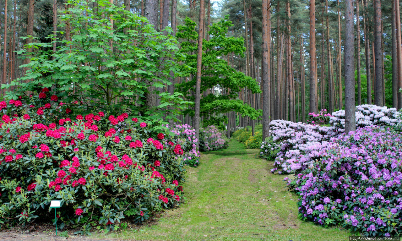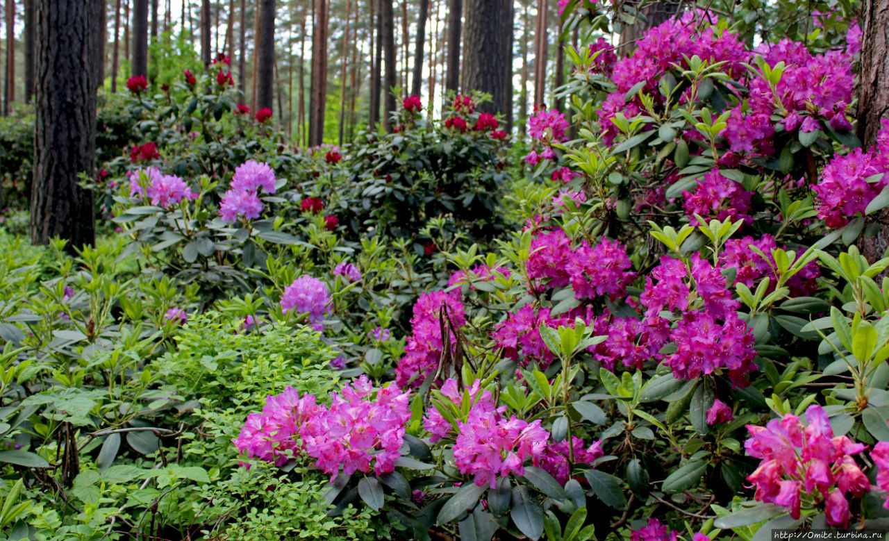 Мешкать нельзя, бросаю все дела и, вооружившись фотоаппаратом, отправляюсь в Бабите. Надо торопиться, ведь всего месяц длится колдовство c 15 мая по 15 июня – в это время рододендроны цветут особенно пышно и разноцветно. Давайте вместе прогуляемся по лесным дорожкам, усыпанным хвоей и шишечками, полюбуемся на фейерверк красок, послушаем, как ветер шумит в высоких кронах сосен.