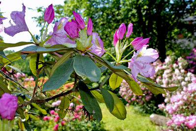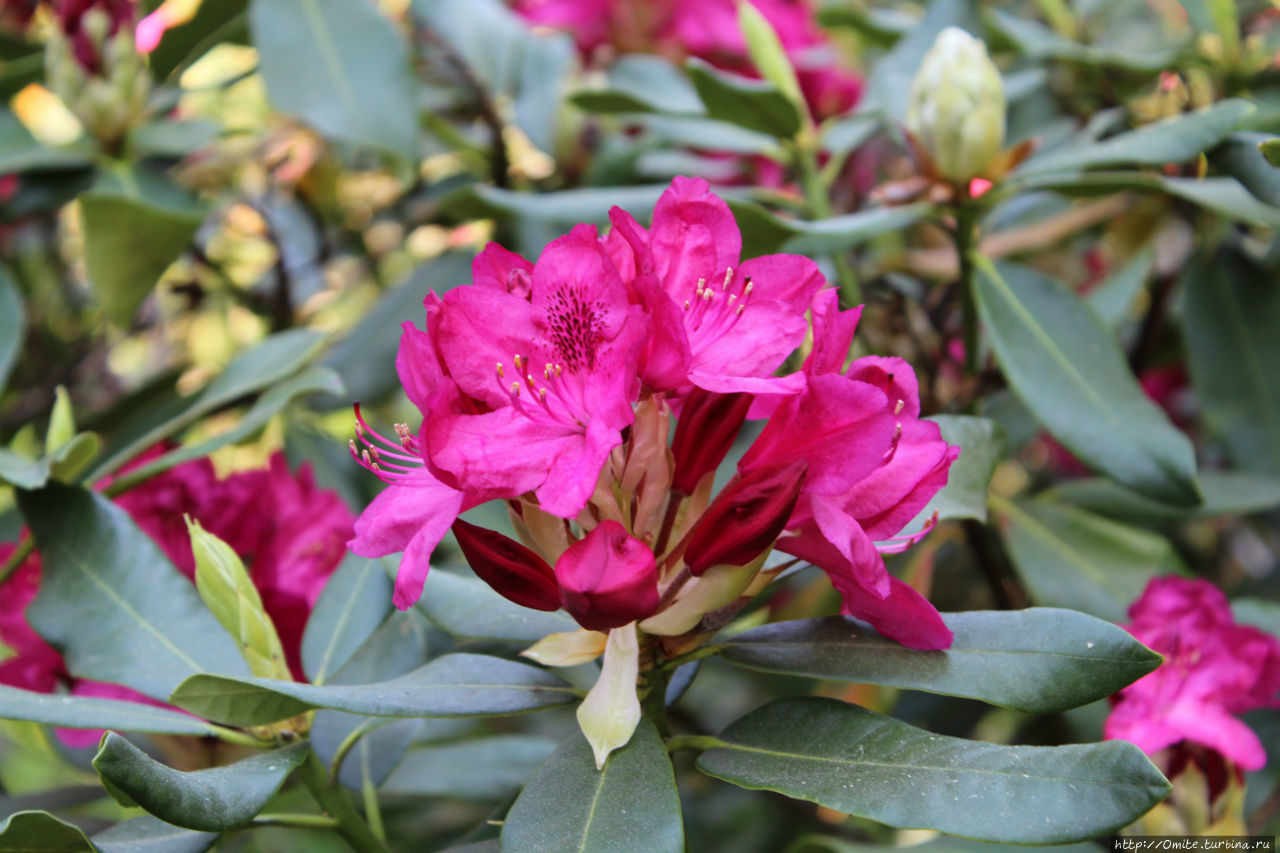 На 12 гектарах питомника рододендронов более 70 тысяч! И все разные: у одних листья осенью опадают, другие – вечнозеленые, третьи – серединка на половинку. Часть кустов выше человеческого роста и более, высота некоторых может достигать 30 метров, живут кусты очень долго – известно, что в Шотландии есть куст, растущий с 1809 года!
