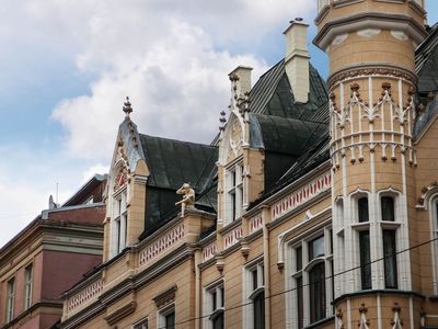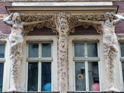 Вот ещё перл от нашего гида: «посмотрите на фасаде изображена женская голова и в ней чего только не понапихано»Но югендстиль — это не только красиво, а ещё и интересно, ведь со многими домами связаны разные истории и легенды, а некоторые скульптуры настолько «живые», что придают самым серьёзным зданиям элемент сказочности.