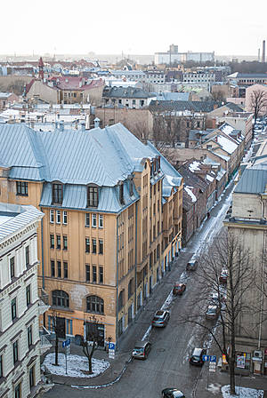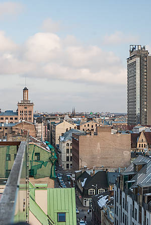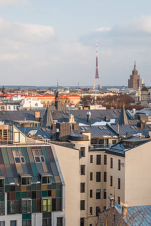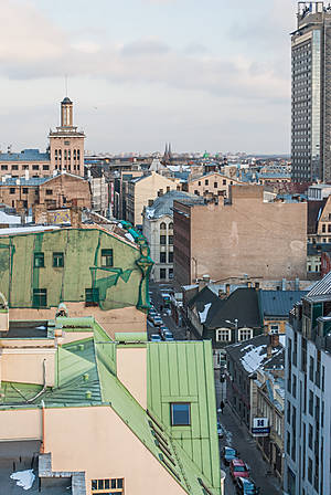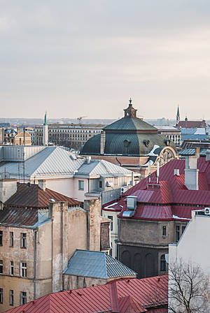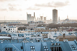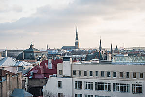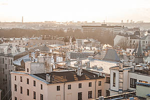 Закат над Старой Ригой со смотровой площадки отеля Алберта