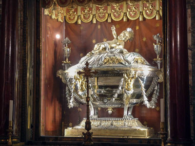 В память о чудотворном избавлении от эпидемии перед базиликой установили чумную колонну, увенчанную статуей Богоматери с младенцем-Иисусом на руках.