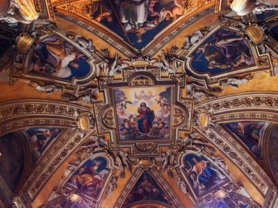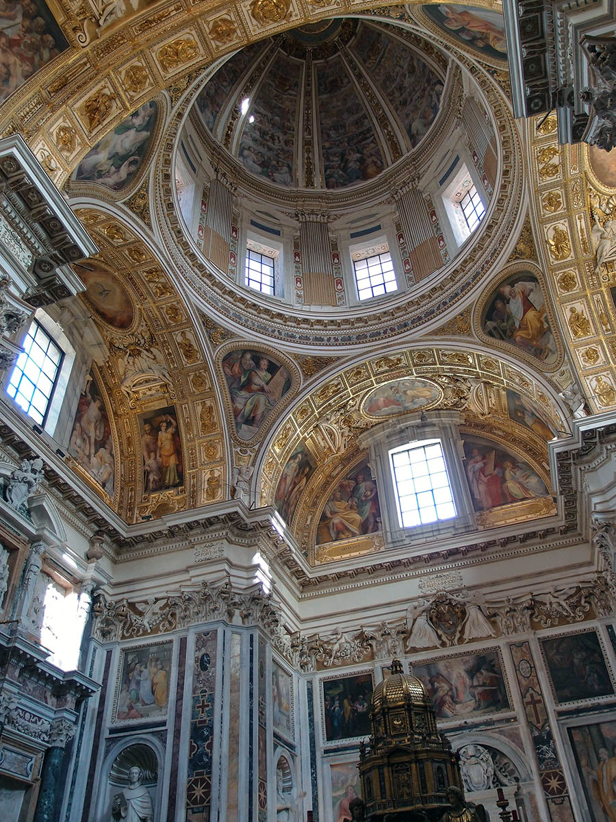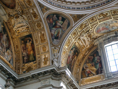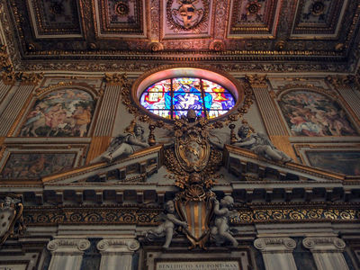 Первая партия золота была привезена из Перу, и рьяная католичка, королева Испании Изабелла и её муж Фердинанд преподнесли это богатство в дар папе Александру VI. Сомневаюсь, что сей поступок помог монаршей паре обрести после смерти место в раю, но потолок храма, несомненно, прекрасен!