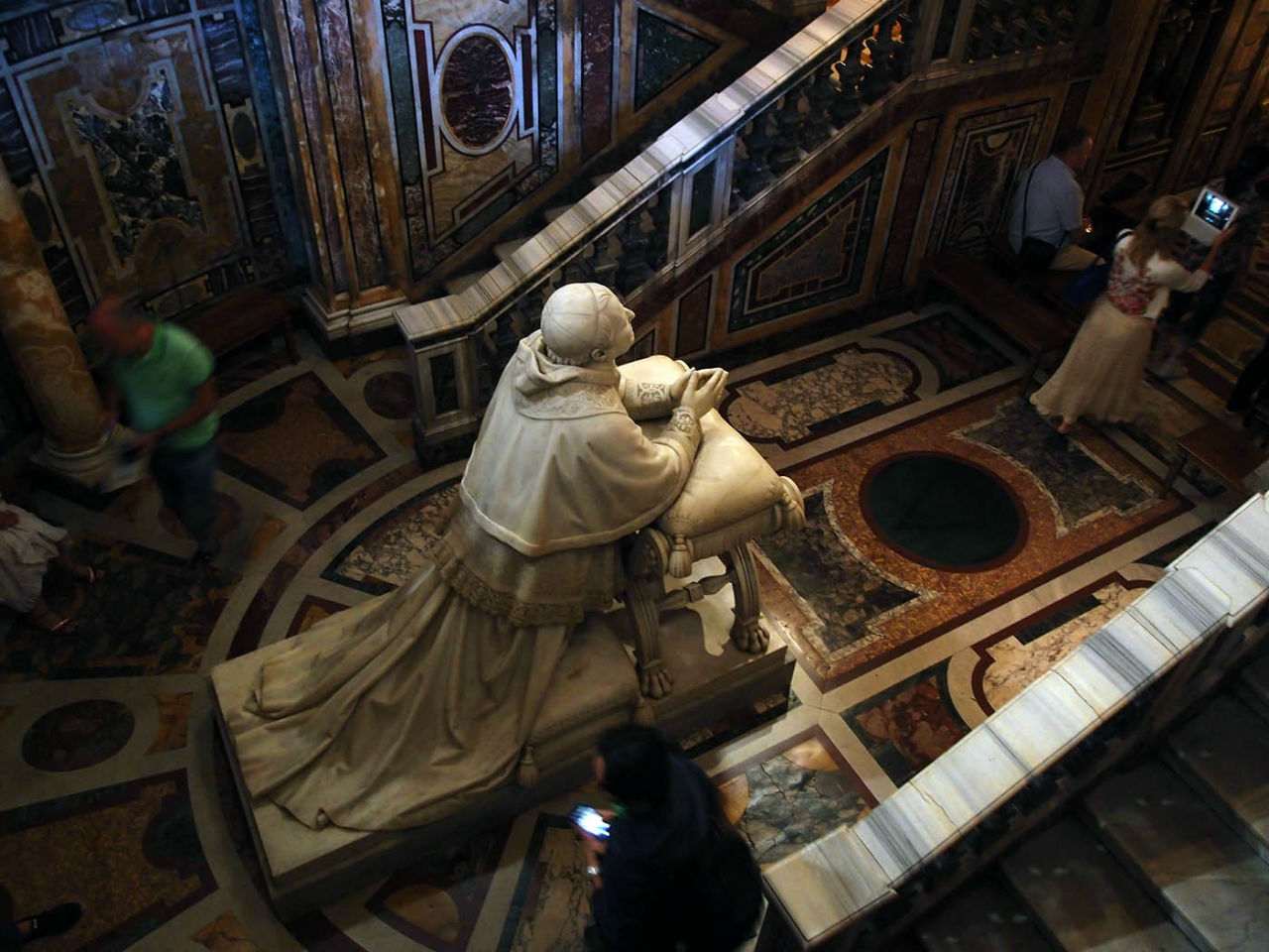 Статуя папы Пия IX, застывшего в молитве перед алтарём крипты