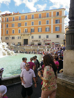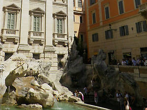 От себя отмечу только то, что как и все туристы, я бросил монетку правой рукой через левое плечо встав спиной к фонтану, чтобы обязательно вернуться в Рим, и напился чистейшей воды из двух струй бьющих с левой стороны от чаши фонтана, сулящих встретить или сохранить любовь каждому испившему воды из источника.