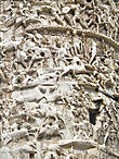 При этом изображения стали более простыми в проработке деталей. Мастера нарушив пропорции человеческого тела высекли людей с увеличенными чертами лиц стараясь передать мимику и настроение изображаемых римских воинов.Но не только древнеримская колонна украшает эту почти квадратную в плане площадь.