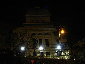 Остров Тиберина. Корабль в водах Тибра Возвращаясь с острова чуть левее моста можно увидеть большую синагогу Рима. Это место является основным местом поклонения, где собираются прихожане еврейской общины. Построена синагога в 1901-4 годах.