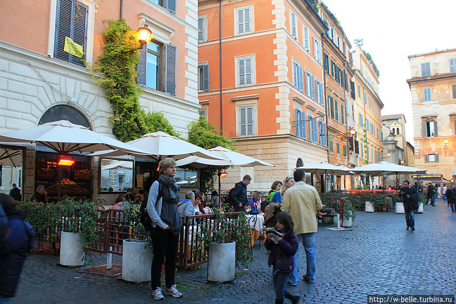 Мы садимся за столик в типичном ресторанчике, недалеко от площади у церкви, долго не мудрствуя, заказываем лазанью и целый час наблюдаем картинки из римской жизни.