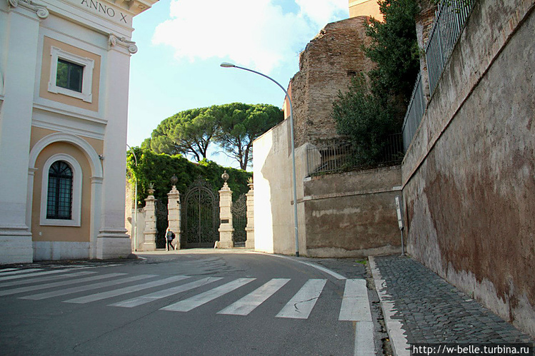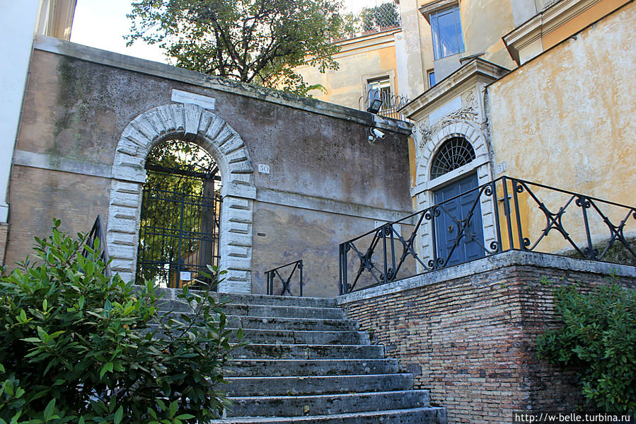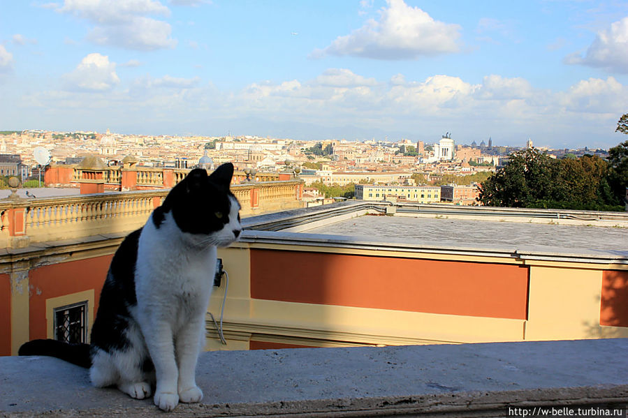 Темпьетто с площади не виден, он находится во внутреннем дворике, за воротами из кованной решетки. Ворота закрыты и нам приходится немного подождать, их откроют в 14 часов, а пока нам есть чем заняться — мы рассматриваем виды на город со смотровой площадки, римских ленивых сонных кошек и жизненные радостные сценки, подсмотренные ненароком.