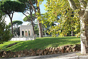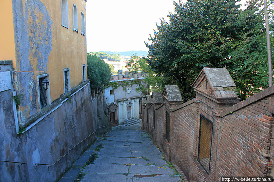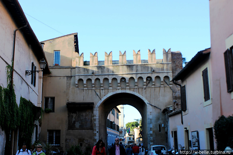 По улице Гарибальди мы спускаемся до ворот Порта -Сеттимиана, построенных в 1498 году. По одну сторону ворот виден Ботанический сад, который примыкает к парку. сад основан в 1883 году, после того как часть территории вокруг палаццо Корсини передали Римскому университету.