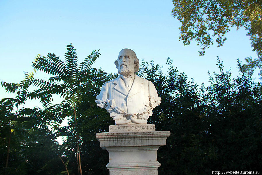 На большой площади высится памятник Джузеппе Гарибальди работы Галлори, построенного в 1895 году.