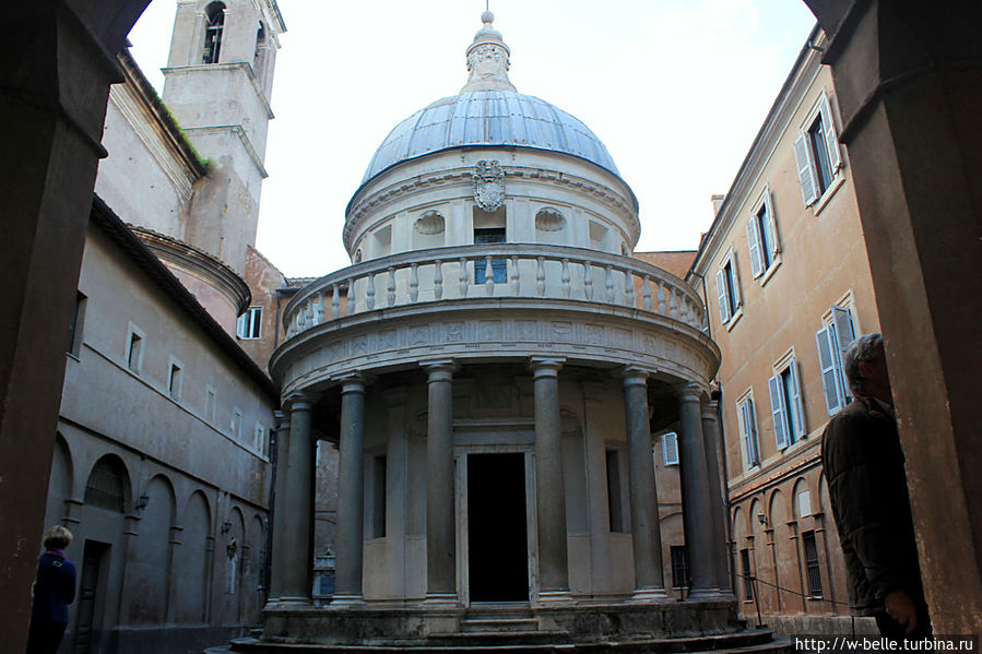 Церковь Святого Петра в Монторио (San Pietro in Montorio), во внутреннем дворике которой Донато Браманте построил Темпьетто на том месте, где, согласно необоснованному преданию, был распят Святой Петр. Это — шедевр итальянской эпохи Возрождения, охарактеризованный умелым использованием таких элементов, подражающих классическим образцам, как колонны и ниши.