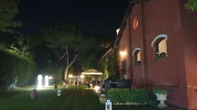 Традиция , которую в Италии никто не отменял — это свадьбы с большим количеством гостей. Этот ресторан специализируется именно на таких. Огромный элегантный зал с деревянными балками под высоченным потолком очень подходит для организации всяких мероприятий. Большой красиво оформленный сад вечером горит иллюминацией дополненной светящейся мебелью. Его можно использовать для праздников круглый год. Слава богу , в Риме хорошая солнечная погода не редкость и зимой. Здание окружено высокой стеной с красивыми воротами, что придаёт таинственность всему комплексу. Большая парковка в состоянии вместить машины всех гостей.