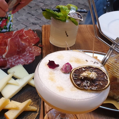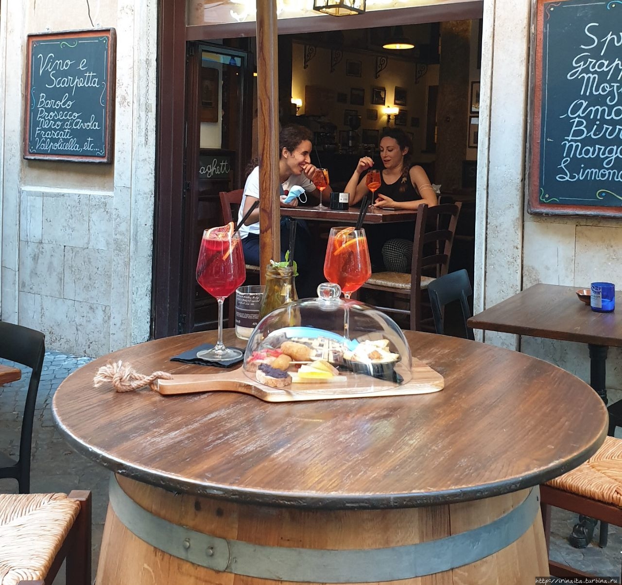 Мало того, в Риме после карантина люди все поголовно хотят сидеть на улице , в помещениях бедняги ужи насиделись. Все хотят после заточения куда-то выйти, но многие потеряли бизнес , работу , просто деньги за простой. Вобщем, чтобы предложить клиентам предложение от которого невозможно отказаться ресторан предлагает формулу закуски + коктейль за 8€, рыбные закуски + выпивка за 10€ . Интересные и очень вкусные коктейли — лучшие в этой зоне.