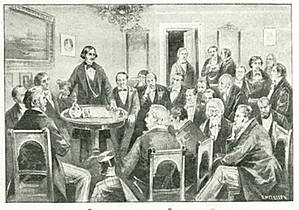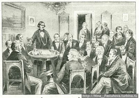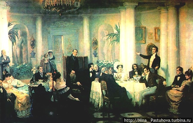 Этот дом становится средоточием русских художников, которых направляет Академия художеств для совершенствования мастерства. Здесь образовался первый русский артистический салон в Италии. Там бывали и Карл Брюллов, и Сильвестр Щедрин, и Федор Бруни. Там бывал итальянский композитор Доницетт, устраиваются оперные вечера, итальянские ужины на манер античных, когда собравшиеся возлежали на низких кушетках и в римских тогах, и служители тоже были одеты в античные костюмы.